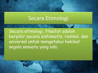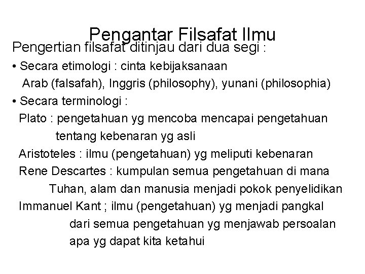 Pengertian Etimologis Filsafat Ppt Download