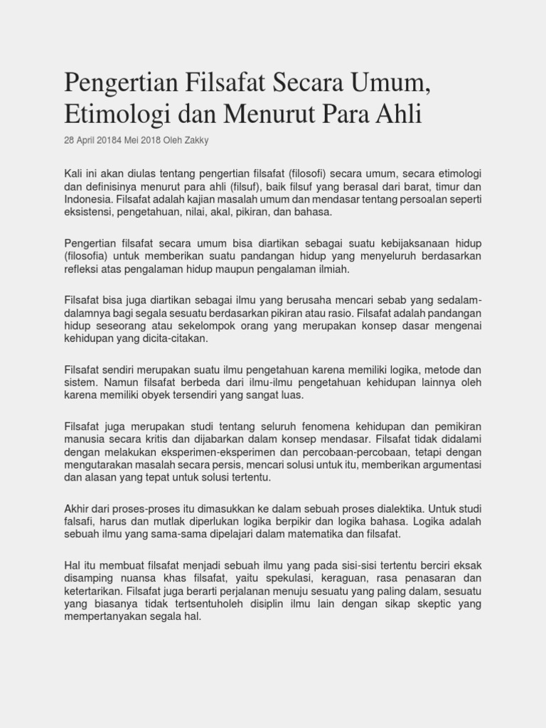 Pengertian Filsafat Secara Umum Etimologi Dan Menurut Para Ahli Pdf